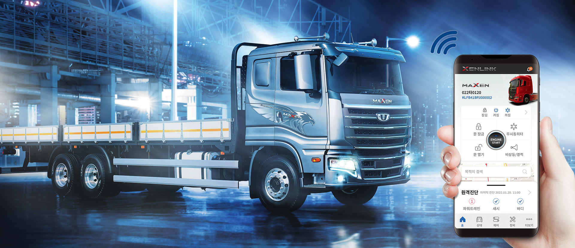 타타대우모빌리티의 XENLINK 시스템을 통해 모바일로 쉽고 편리하게 차량을 원격 제어하며,